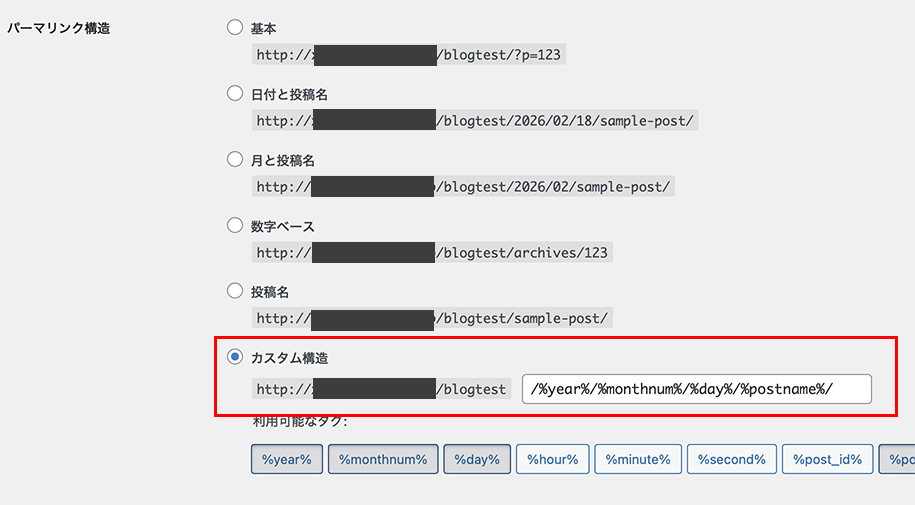 この設定を後から変更すると、すべての記事URLが変わってしまい、SEO的にマイナスになってしまう可能性があります。