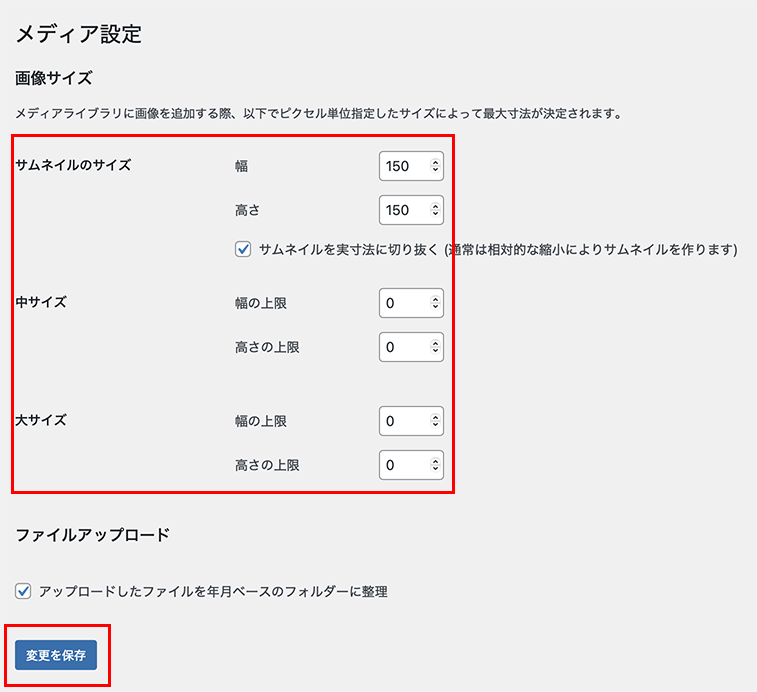 不要な画像サイズを0にして、「変更を保存」をクリックしてください。